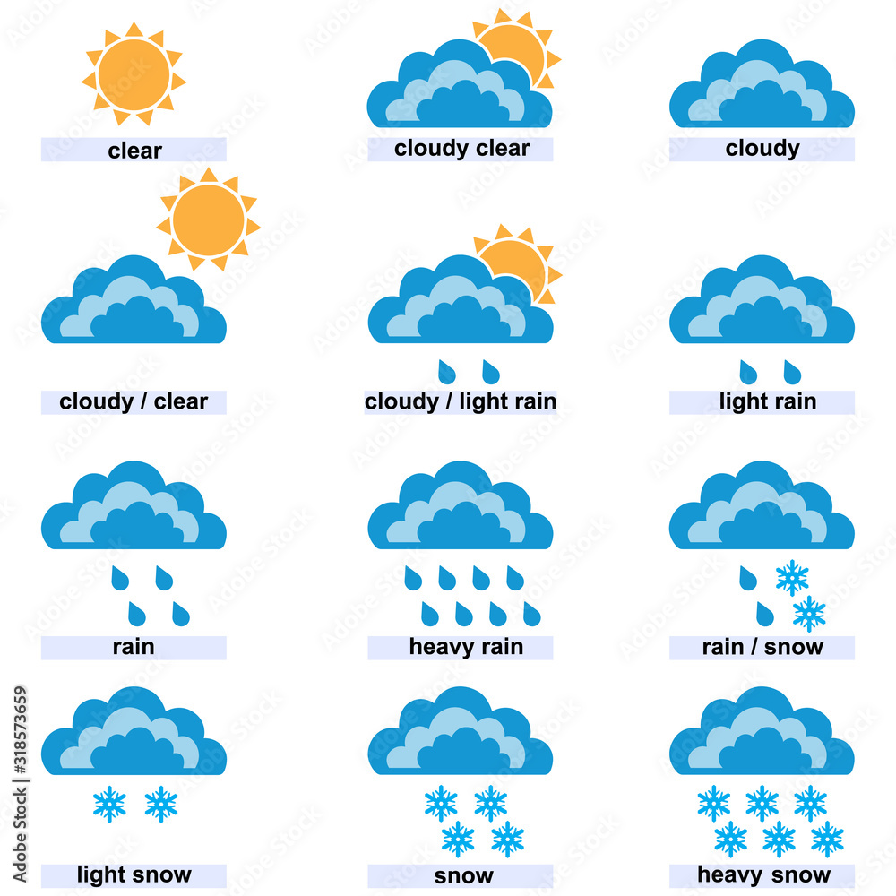 Symbols Of The Sun Clouds Rain And Snow Infographic Elements For Weather Forecast Icon Set Vector Illustration Stock Vektorgrafik Adobe Stock